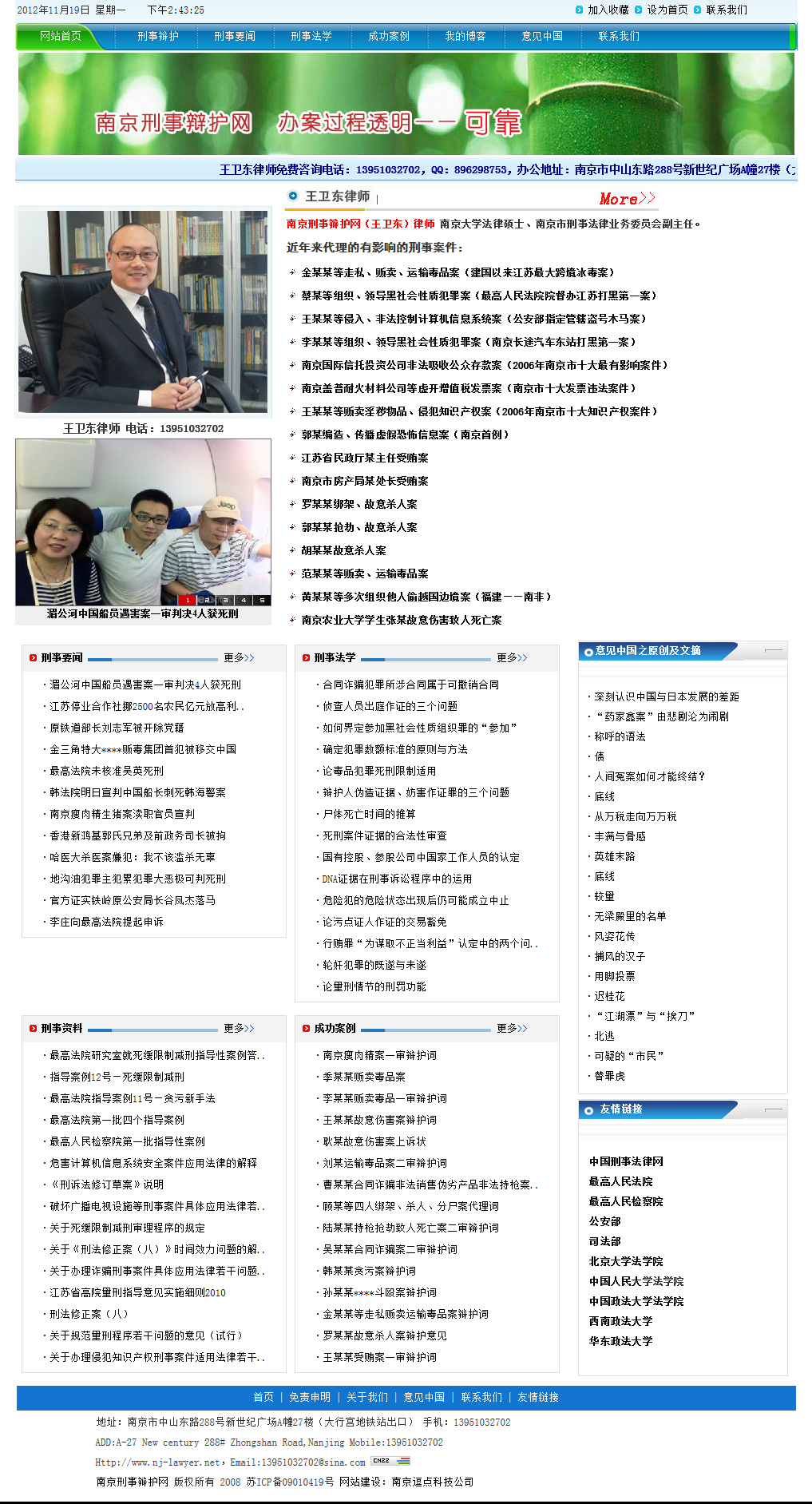 南京刑事辯護(hù)網(wǎng)由專業(yè)刑事辯護(hù)律師王衛(wèi)東創(chuàng)辦,本網(wǎng)站以刑事辯護(hù)為核心,內(nèi)容包括刑事辯護(hù)律師實(shí)務(wù)、刑事法學(xué)的最新研究成果、王衛(wèi)東律師的原創(chuàng)文章及對(duì)刑事辯護(hù)的思考。